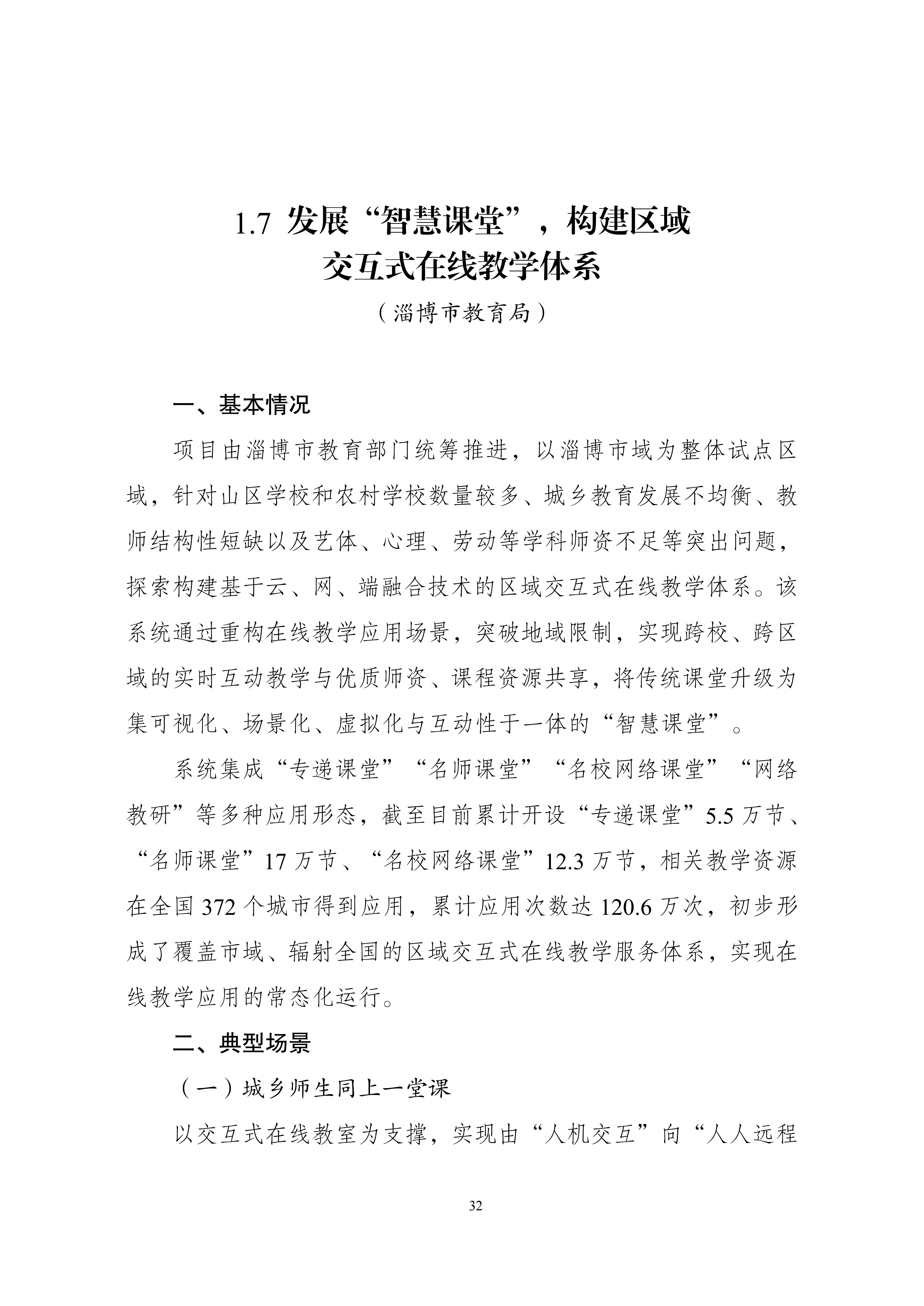 【案例一】发展“智慧课堂”,构建区域交互式在线教学体系(淄博市教育局)