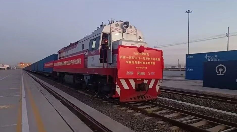 11月20日19时,X8182/1次全程时刻表班列从济南董家镇站发车,将经阿拉山口口岸出境,途经哈萨克斯坦、俄罗斯等六国,最终抵达匈牙利布达佩斯,全程运距9958公里,运输时间12天3小时。济南至匈牙利布达佩斯全程时刻表中欧班列,每双周周四始发,通过“定点、定线、定车次、定时、定价”模式,减少了普通货运“拼车发车”的影响,降低了企业仓储成本,压缩班列在途时长约30%,不仅拓展了山东对接“一带一路”沿线国家的物流网络,也让“好品山东”更快、更稳定走进欧洲市场。