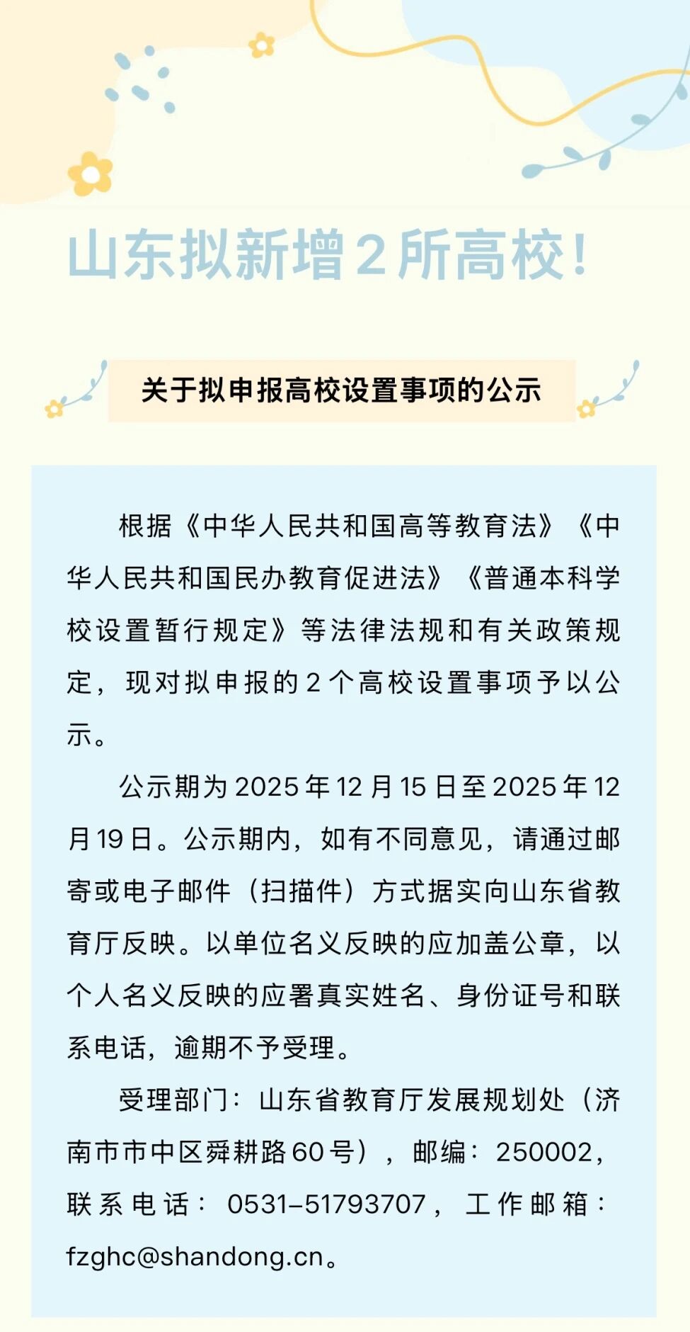 山东拟新增2所高校!