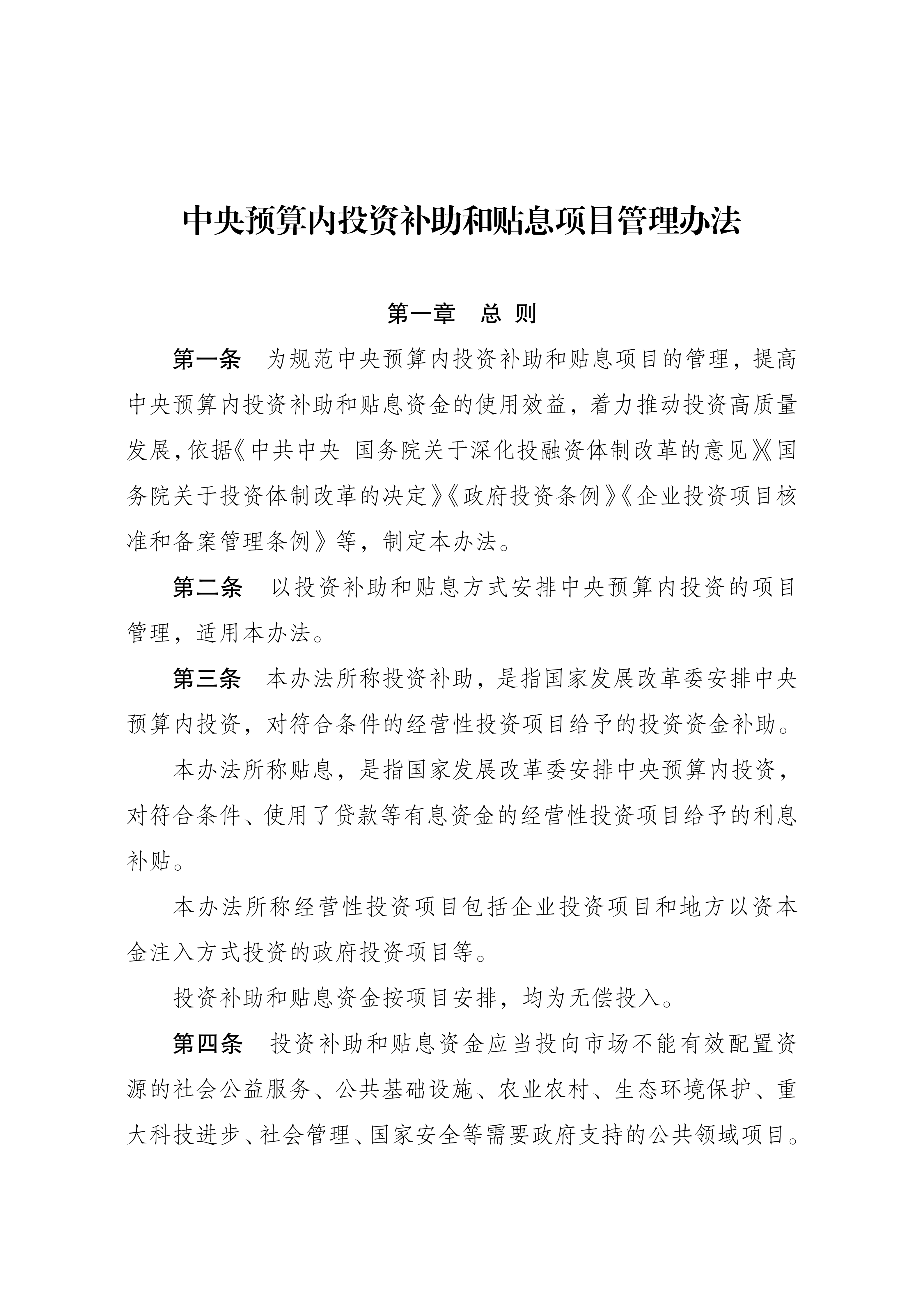 附件中央预算内投资补助和贴息项目管理办法
